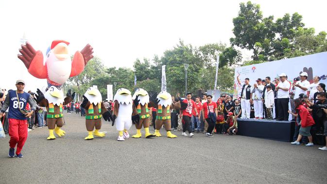 Momo, maskot Asian Para Games 2018 dalam ukuran raksasa, untuk pertama kalinya dipamerkan di hadapan ribuan warga. Yuk, berkenalan dengan Momo si elang bondol!