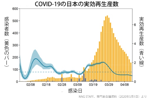パンデミックになるような感染症はR0が1以上であることは間違いなく、今、ぼくたちは「行動変容」によって、この実効再生産数を1よりも小さくすべく努力しているところである。