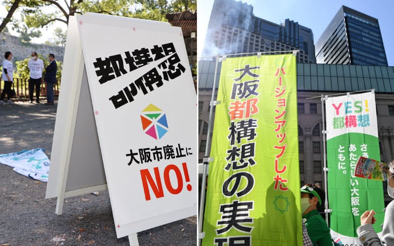 日本経済新聞社とテレビ大阪は16~18日、大阪市内の有権者を対象に世論調査を実施した。大阪市を廃止して4つの特別区に再編する「大阪都構想」の住民投票を11月1日に控え、賛否を聞いた。都構想に賛成と答えた人は40%、反対は41%で拮抗した。