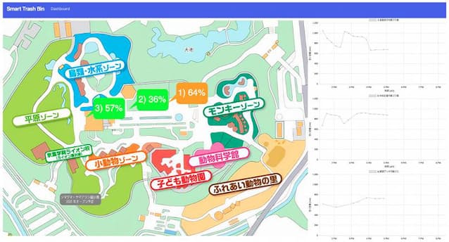 ごみの蓄積量や回収状況に関するデータを収集し、人工知能(AI)で分析して回収にかかる業務量の削減やごみ箱の最適配置にも取り組む。将来は来園者数の予測に基づき、ごみの蓄積量の予測もできるようにする計画だ。