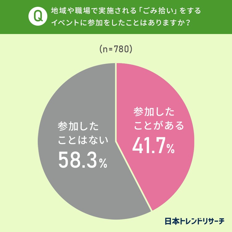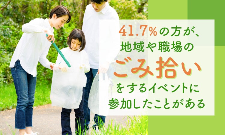 地域や職場で実施される「ごみ拾い」をするイベントについて聞いたところ、「参加したことがある」方は41.7%でした。