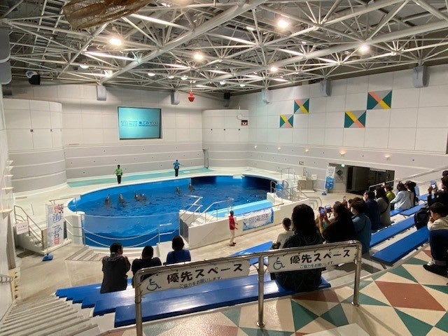 海ごみゼロ!ナイトアクアリウム開幕前のプレイベントとして、イルカショーを通して、生き物への海洋ごみの影響について学んでもらいました。まずは、いるかたちによるパフォーマンスを楽しんでもらい、会場のフロントモニターを使って、海洋環境の現状についての水族館の学習、海洋ごみの誤飲誤食、内視鏡でみた、いるかのおなかの中の様子など、鹿児島の身近で起きている問題について考えてもらいました。