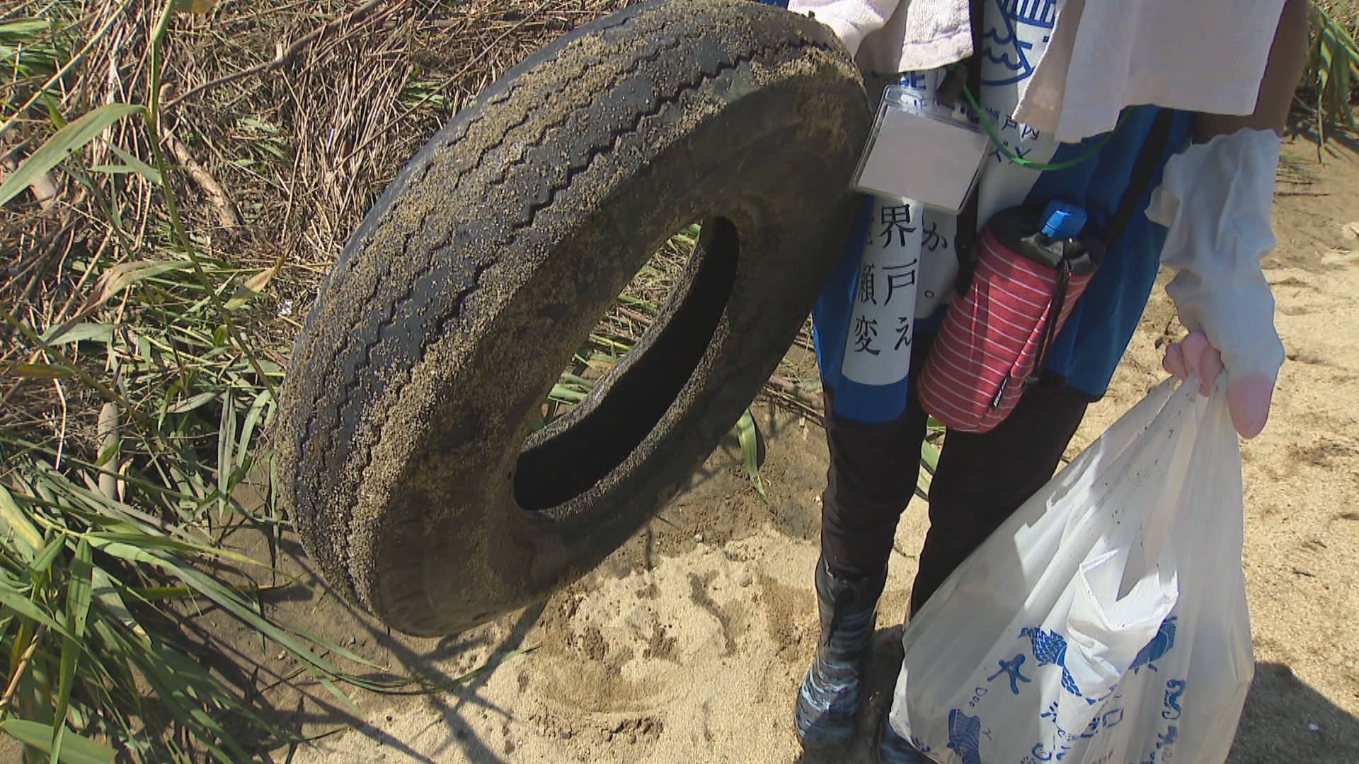 日本財団が香川県と行ったもので、地元の人や小中学生など約350人が参加し、空き缶やブルーシートなどのごみを袋いっぱいに拾っていました。