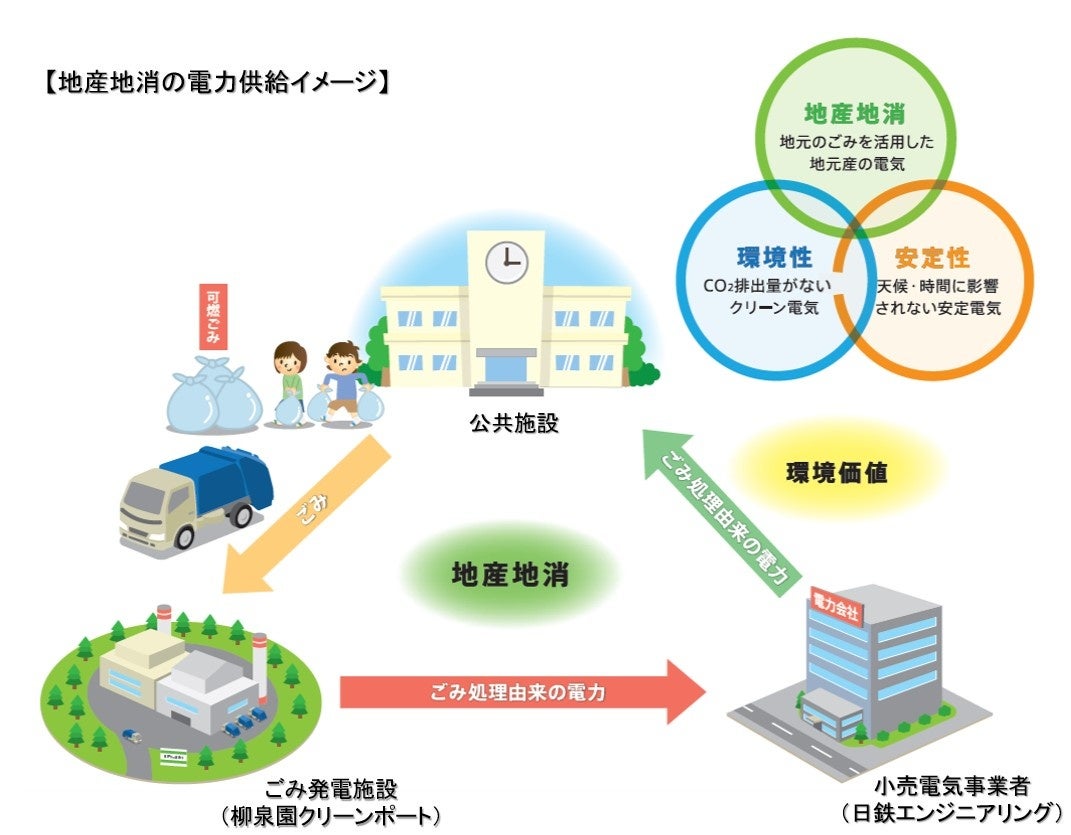 今回の取り組みは、当社として自治体向け7事例目となります。当社は、全国各地で当社グループが建設・運営するごみ発電を活用した地産地消電力による「地域循環共生圏」の創造、また再生可能エネルギーを活用したCO2フリー電力※2、RE100電力※3等、環境に配慮した電力供給サービスを通じて、カーボンニュートラル社会の実現とSDGsの達成に貢献してまいります。