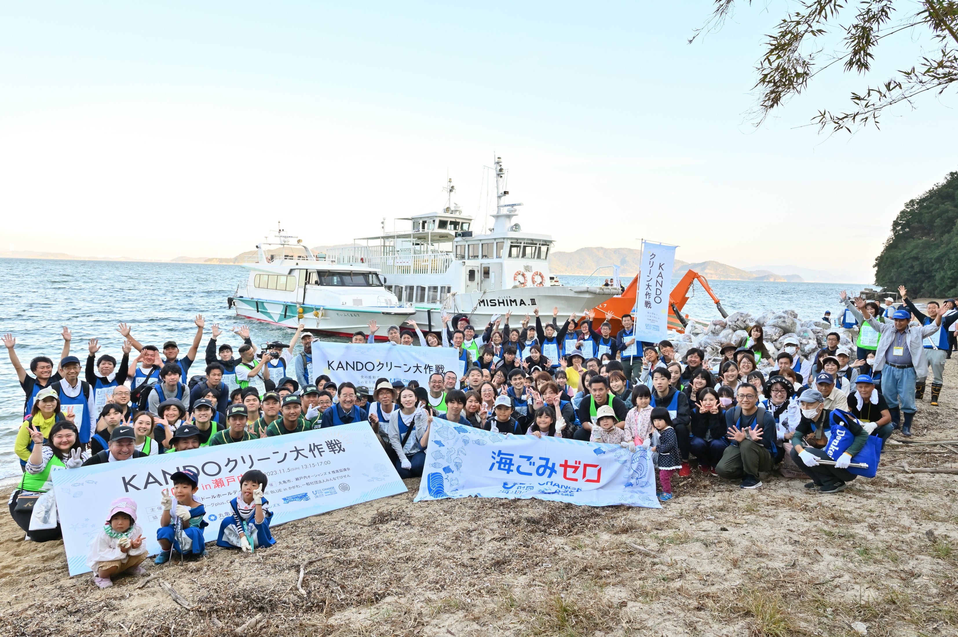 「KANDOクリーン大作戦2023 in瀬戸内海」の参加者からは「初めての参加でしたが、沢山の人数で行えば早いし楽しく清掃が出来て有意義でした。また参加したいと思います。」「讃岐広島にあんなにごみが漂着しているのを目の当たりにしてとても悲しかった。少しでもごみ拾いのお手伝いができて嬉しかった。」といった声が寄せられ、普段の生活ではあまり感じることのできない離島や海洋ごみの実態に触れ、新しい気づきを得る貴重な場になったと感じています。